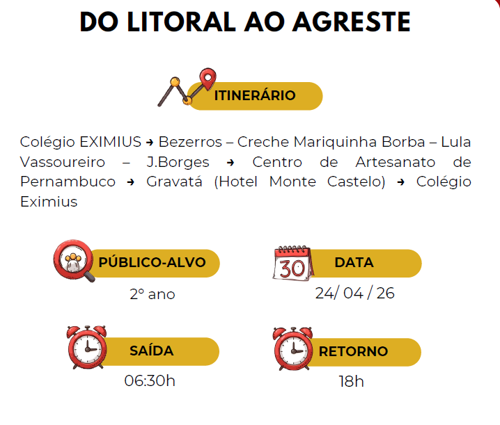 - Camisa do projeto (Chegar no Colégio já trajado(a) no dia);