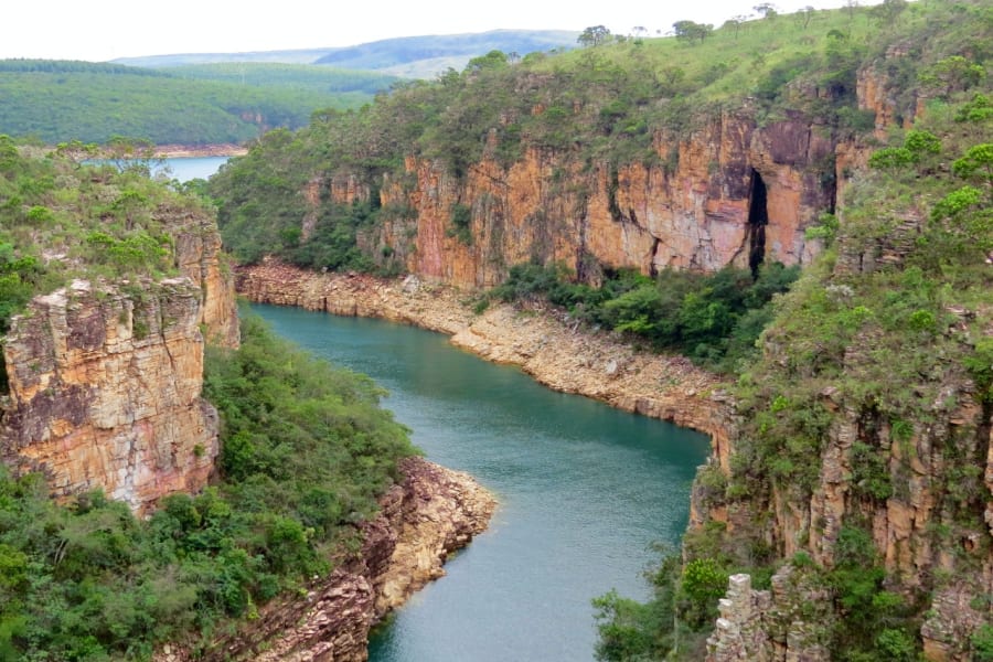 Dia livre ou passeio opcional de barco pelo Lago de Furnas, com paradas nos cânions e na Cachoeira Lagoa Azul.